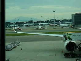우리가 타고 갈 여객기 뒤로 줄을 서서 오고 있는 여객기도 담아보고...제2 여객터미널 개통 했는데도 정체...